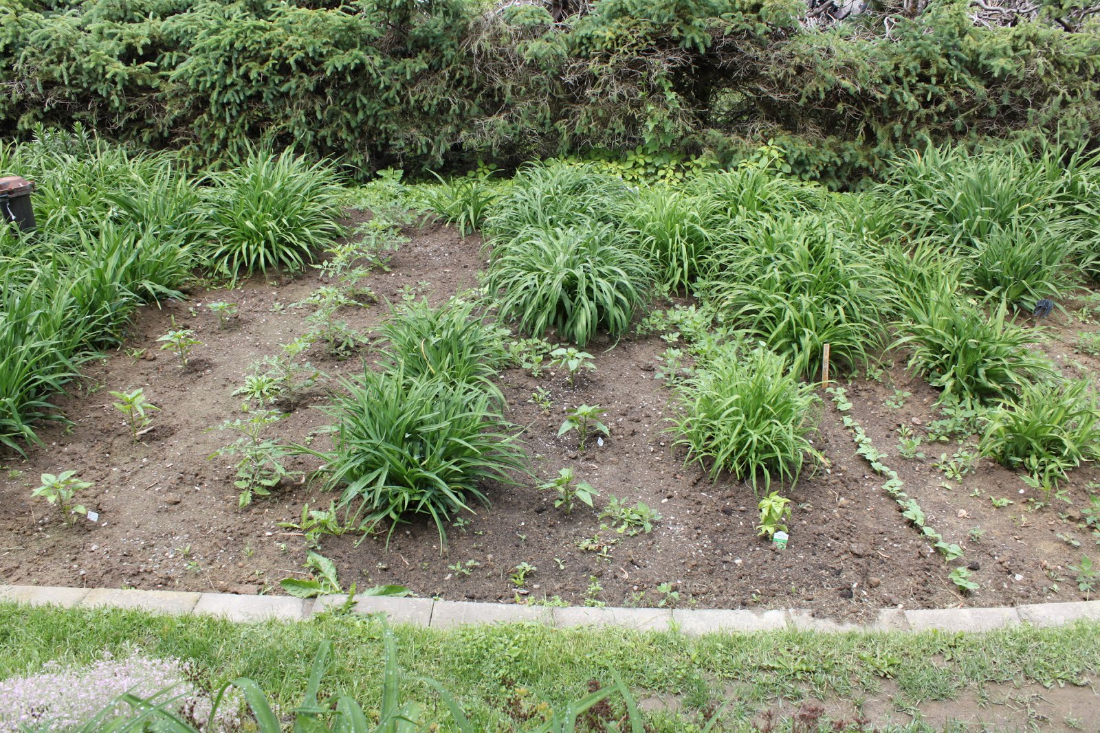 The grass is starting to grow along with weeds that came in the flood. Yesterday, I weeded the garden on the right